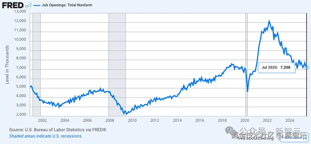 根据知名招聘网站 Indeed 近期的报告,美国就业岗位同比下降 7.3%,数据基本吻合。