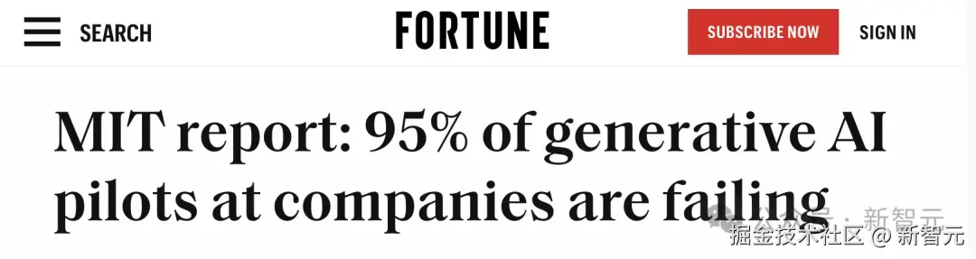 现实呢,来自 MIT 八月份研究报告称,全球 95% 企业应用 GenAI 都失败了。