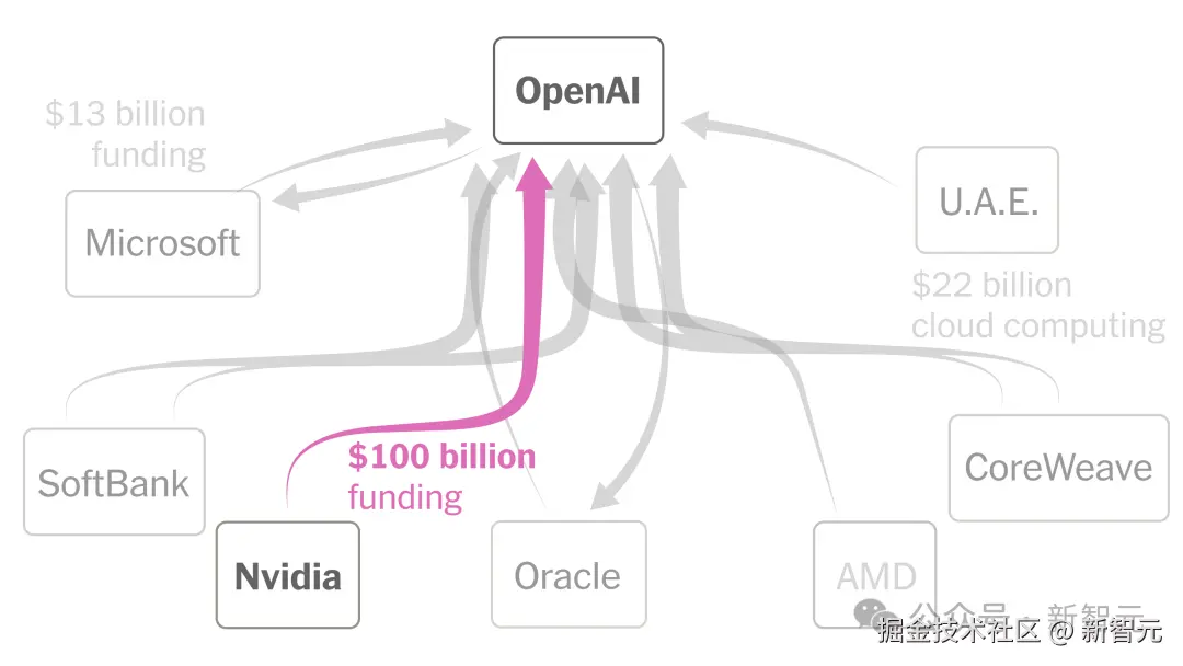 甲骨文、英伟达、亚马逊、微软、AMD、CoreWeave、博通等大厂,皆与 OpenAI 深度绑定,牵一发而动全身。