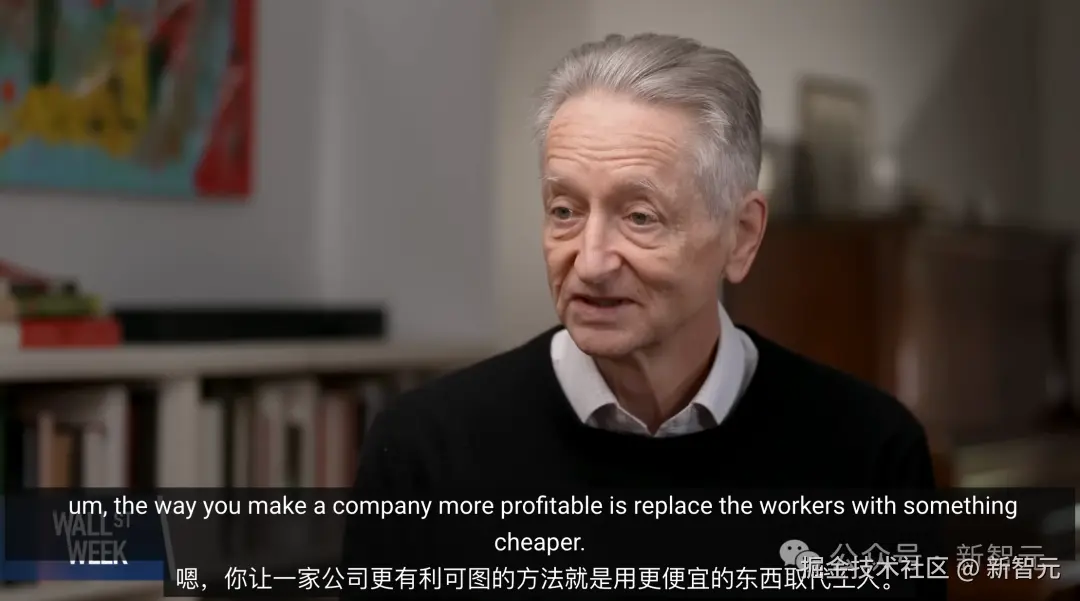 Hinton 回答简短有力,「要想赚钱,就必须取代人类劳动」。
