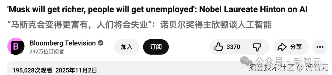 「【新智元导读】AI 万亿赌局,「马斯克们正越来越富,但」人类在集体失业?Hinton 最新末日警告,科技巨头不裁员,根本赚不到钱。」
