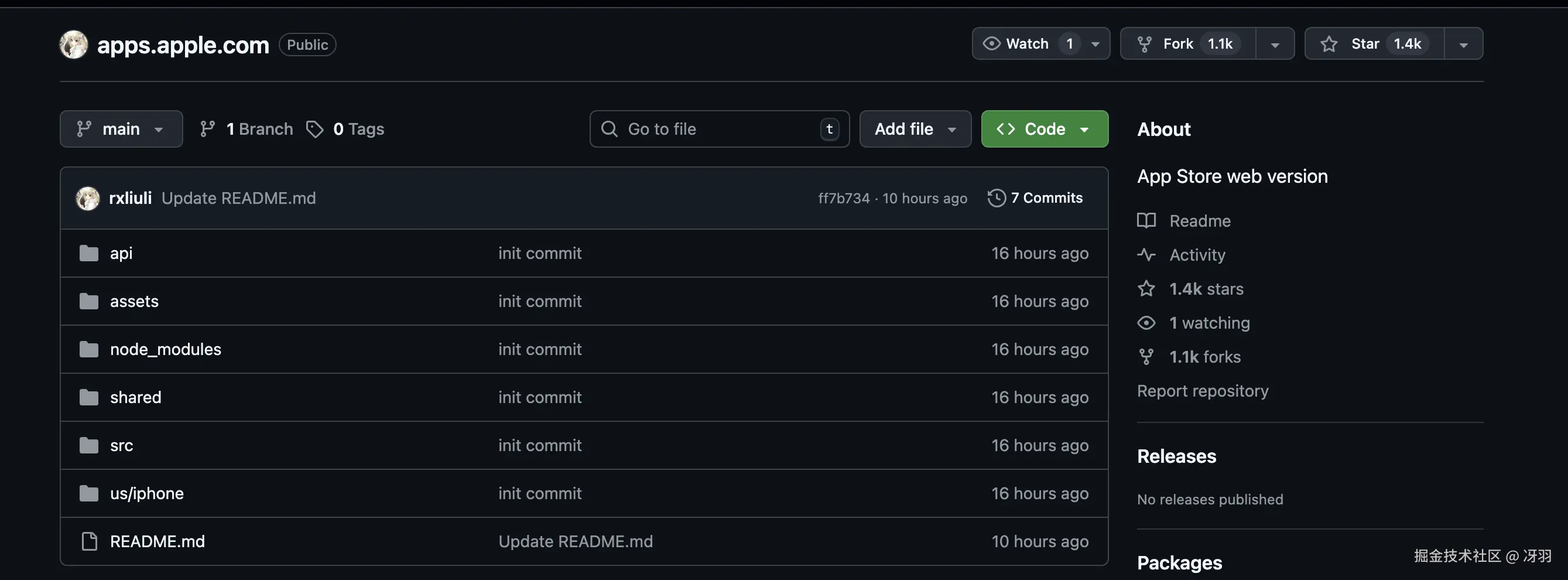 今日苹果 App Store 前端源码泄露,仓库地址:github.com/rxliuli/app…