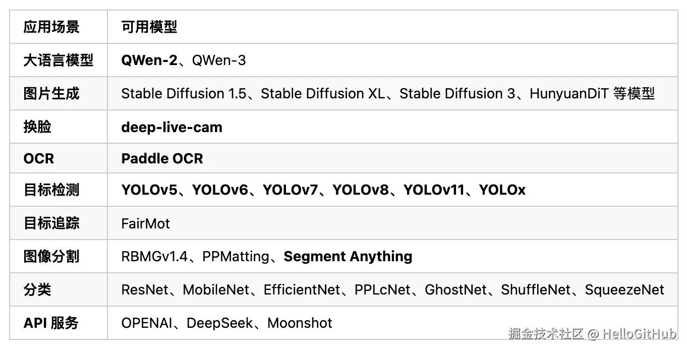 - 一键多端部署:工作流支持导出为 JSON,可通过 C++/Python API 调用,适用于 Linux、Windows、macOS、Android、iOS 等平台。