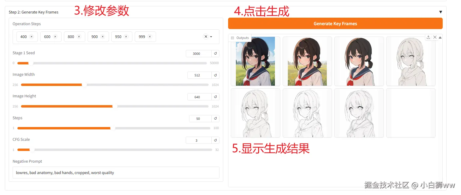 - 「Stage 1 Seed」:可以随机选择种子进行关键帧生成。