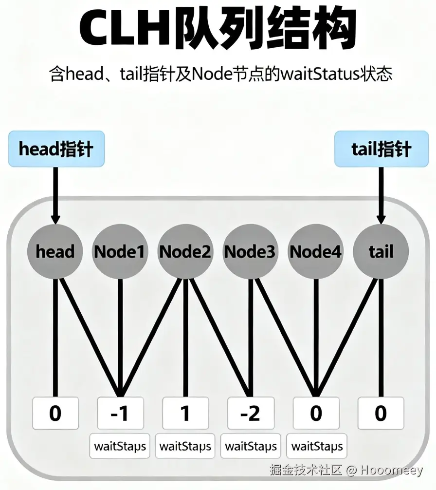 Node 节点的核心状态由 waitStatus 字段控制,其核心作用是实现同步队列中的 「信号传递机制」。当节点处于 SIGNAL 状态时,表示当前节点需要前驱节点在释放资源时唤醒自己;而 CANCELLED 状态则标记节点因超时或中断等原因已失效,需从队列中移除。