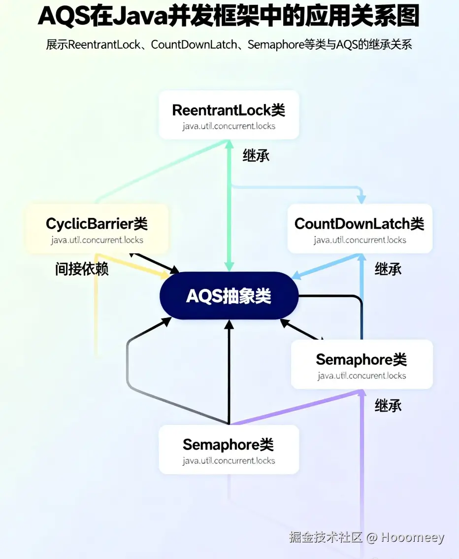 「核心动机」:Doug Lea 设计 AQS(AbstractQueuedSynchronizer)的本质目标,在于构建一个 「通用的同步器基座」,而非具体的锁实现。这一框架通过抽象化同步状态管理、线程排队机制和条件等待等核心能力,为 Java 并发工具类(如 ReentrantLock、Semaphore、CountDownLatch 等)提供统一的底层支持,彻底解决了 synchronized 在扩展性和功能完备性上的固有缺陷。
