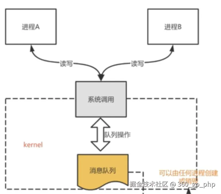 - 消息队列(Message Queue):允许进程以消息的形式发送和接收数据。消息队列具有缓冲区,可以存储消息,并保证按顺序传输。