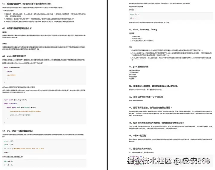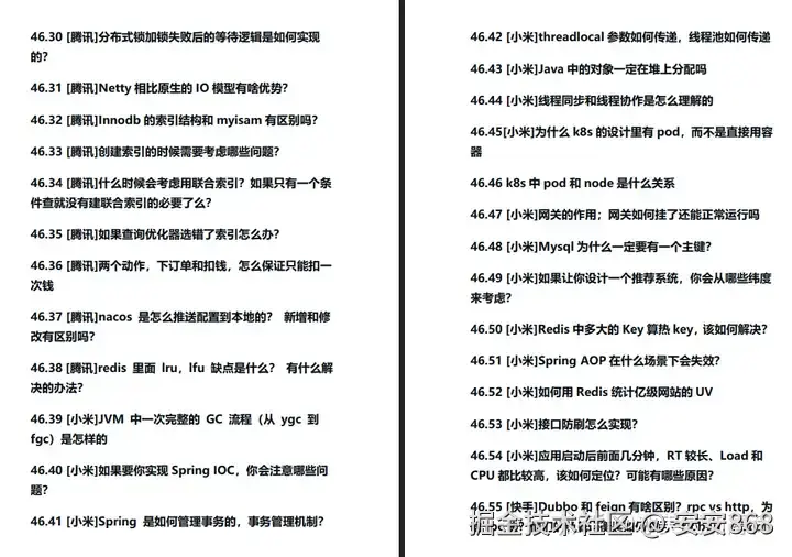 今天的内容涵盖Java基础,JVM,多线程,数据库(MySQL/Redis)SSM,Dubbo,网络,MQ,Zookeeper,Netty,微服务,大数据,算法,项目,设计模式等,篇幅足足近2千页,面试必不可少——刷题!
