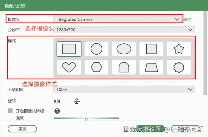 步骤2:选定屏幕录制模式后,按需配置各项录制参数。你还可以自行调整视频的分辨率、帧率与码率,按需勾选是否录制系统声音或麦克风声音。如果需要启用摄像头录制,还能针对性设置摄像头相关参数。所有参数设置完毕后,点击软件界面上的 “开始录制” 按钮,就能正式开启录屏。