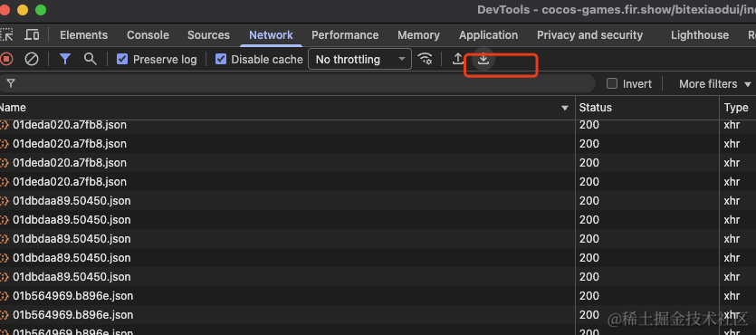 打开控制台,然后重新加载整个网站页面,当所有文件都记录后,点击这里下载har文件: