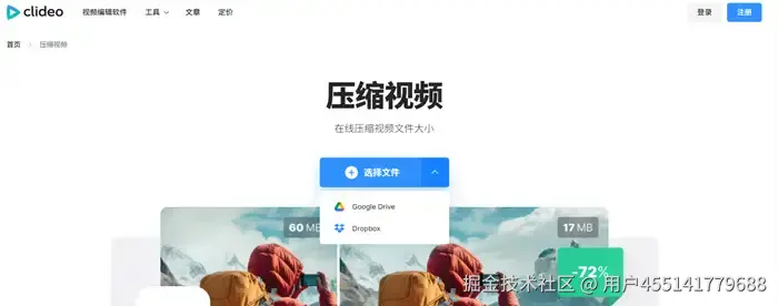 Clideo Video Compressor是一款在线的视频压缩工具。如何压缩视频大小?如果你选择使用这款工具,可以直接在网页界面中点击【选择文件】,将电脑中的视频文件上传到网页,选择压缩预设之后耐心等待视频压缩完成。对Clideo Video Compressor的压缩效果感到满意,就可以将视频重新下载回电脑中啦。