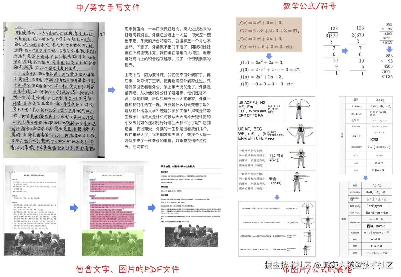 **金融/法务:**扫描的合同、财报、监管文件。