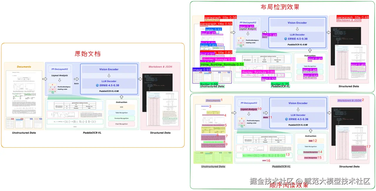 它直接上了 PaddleOCR,能处理扫描件、图片,实现高精度的版面分析和文字识别;