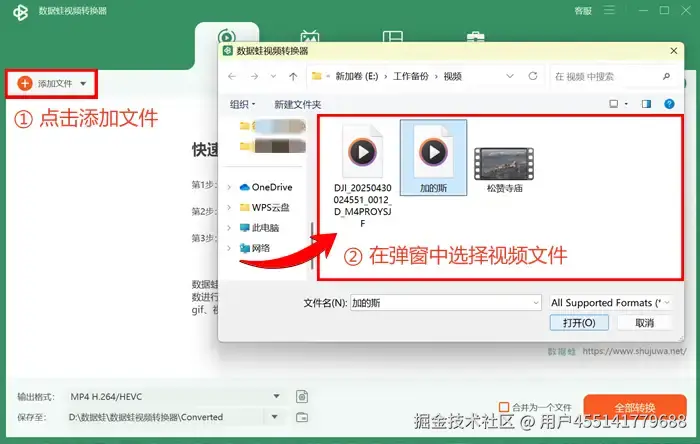 第一步: 根据界面提示,首先点击主界面左上方的 【添加文件】 按钮,在下图所示弹窗中导入视频文件。