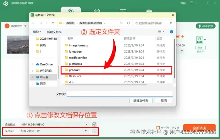 第三步: 一般来说,数据蛙视频转换器会新建文件夹保存导出到视频,如果你需要手动更改保存路径,点击左下角的保存选项即可调整。