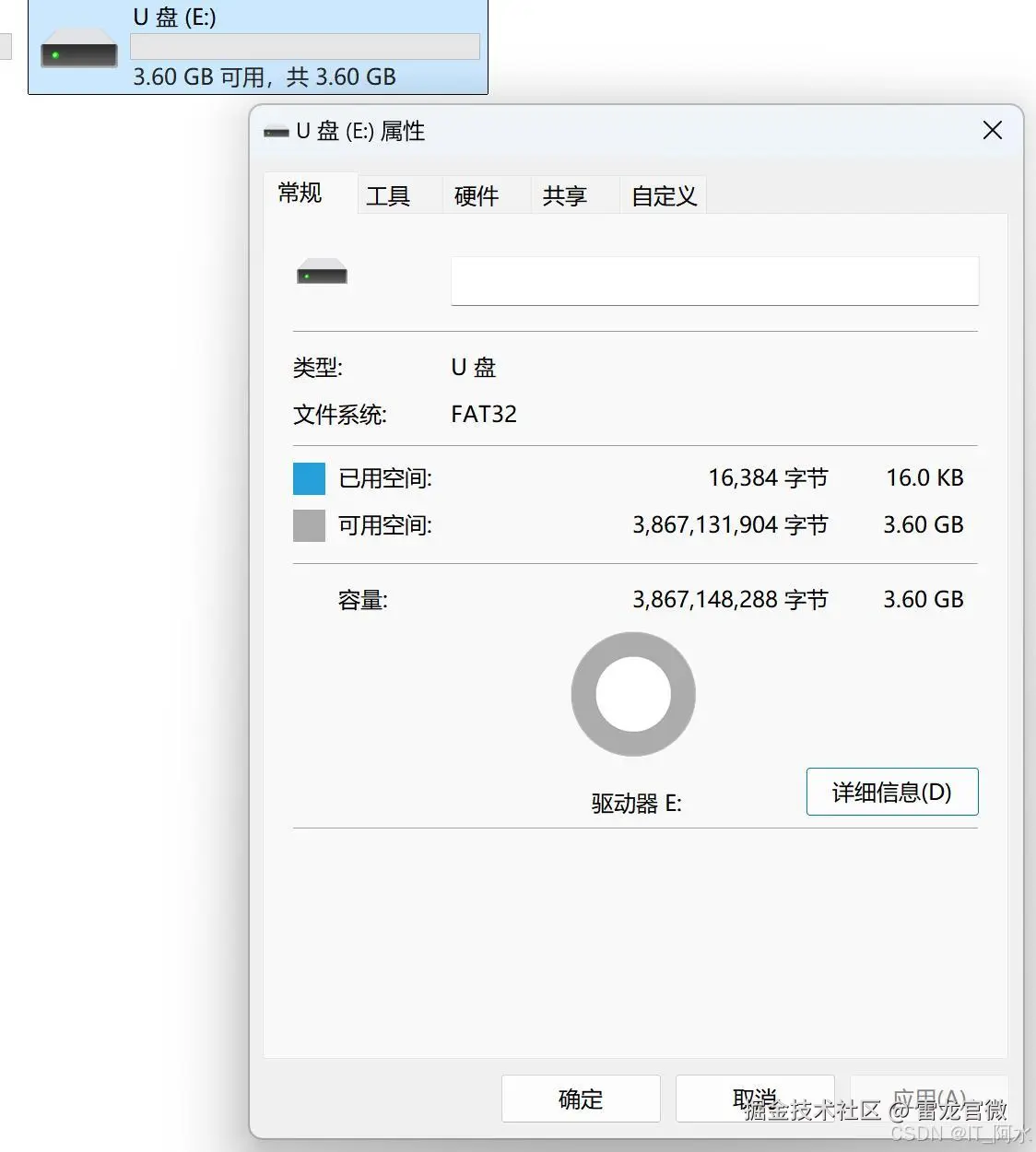 磁盘可用大小为3.6GB。