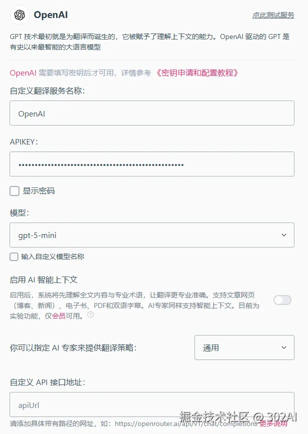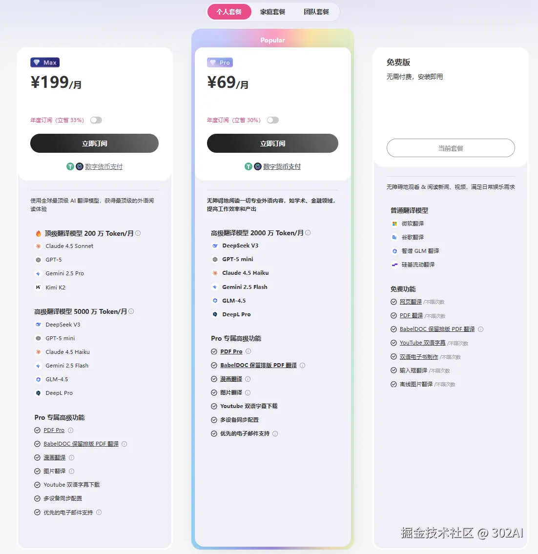 如果已经是302.AI的用户,或是偶尔才需要高质量翻译,觉得官方订阅制用量过剩的用户,按用量付费的302.AI就会是您最合适的选择,随时按需调用包括GPT,Gemini,Claude等旗舰模型。