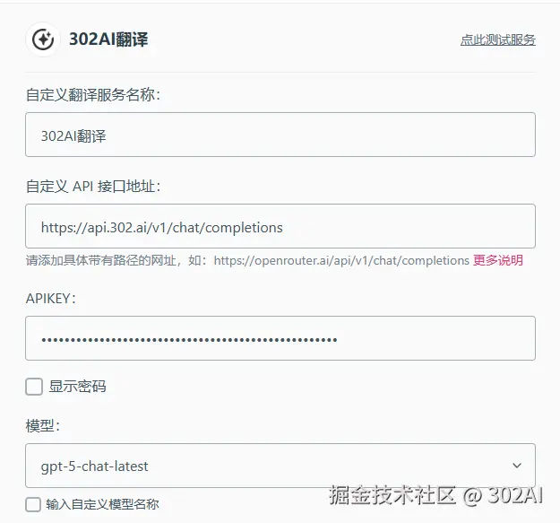 API接口地址请输入:api.302.ai/v1/chat/com…