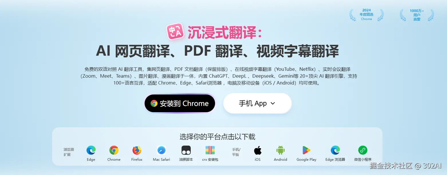 这篇实战教程,就是为你准备的答案。我们将手把手教你,如何在三分钟内,让沉浸式翻译插件调用302.AI平台部署的所有顶尖大语言模型,彻底打通信息获取的“最后一公里”,让你享受真正高质量的全球同步阅读体验。