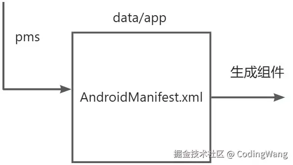 app安装的时候,会在data/app中放置目录,并且在data/data/pkgName创建所属目录,然后再data/dalvik-cache中创建虚拟器加载指令的目录。所以我们需要关心的是app安装后的扫描的data/app中的目录,系统会解析这个apk下的AndroidManifest.xml的组件,
