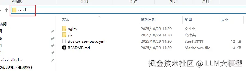 解压后进入LazyCraft/docker目录下,在搜索栏,输入cmd 回车,就能进入当前目录下的控制台。