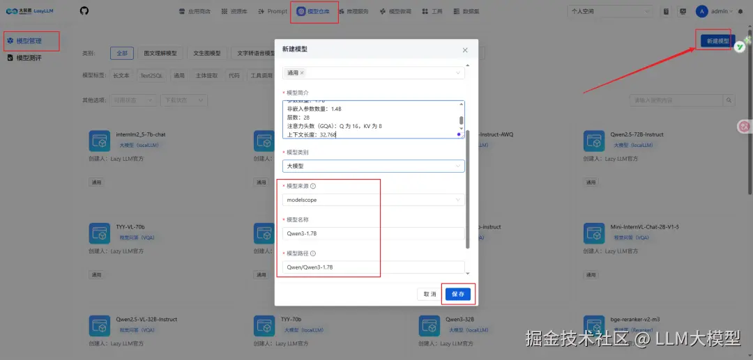 比如在模型仓库>模型管理 可以添加Qwen3-1.7b