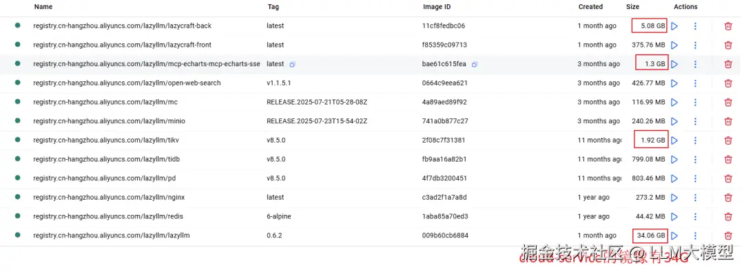 LazyCraft整个服务挺多的(13个服务/容器),有几个镜像比较大,特别是cloud-service有34G,所以下载镜像的这个过程可能会有点久,需要本地有足够大的空间。