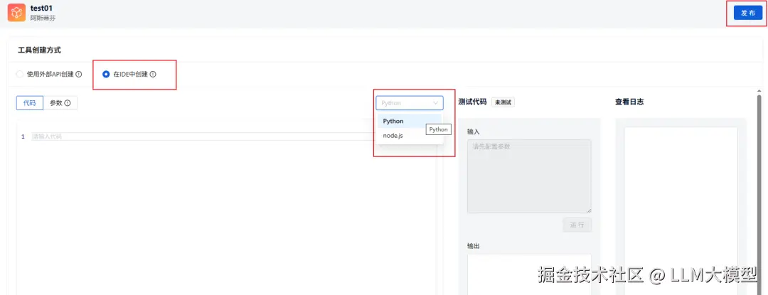 最牛的是在自定义工具里面,不仅支持外部API创建,还支持本地的IDE创建!这个是Coze线上版本才有的功能啊