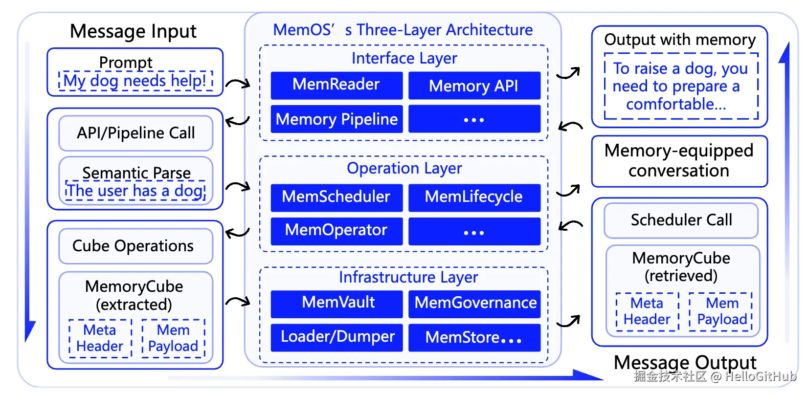 换句话说,MemOS 是让 AI “长记性”的操作系统。它不仅存数据,还能在推理中动态调度、复用和更新这些记忆。