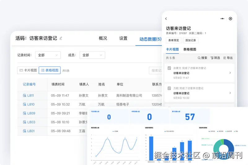 所有登记记录会自动汇总到后台,可实时查看和筛选,支持导出成Excel或PDF格式的数据。若与腾讯文档同步,还能实现多人共享,自动生成日报或月度台账,减少手工整理工作。