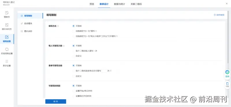 2.设置填写和预约限制