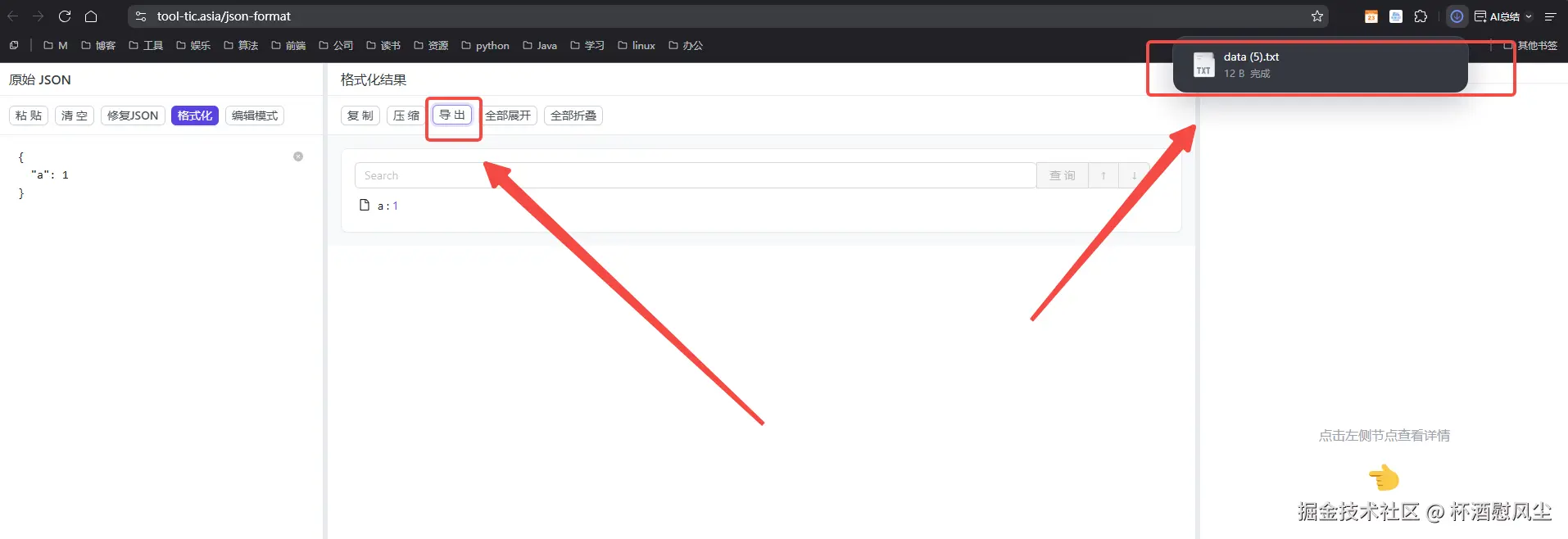 如果你有将JSON数据发给别人的需求,但是json数据有时候比较大,超出微信等社交工具聊天框限制,这个时候可以点击导出按钮将json数据导出成文件,然后直接发送文件即可。