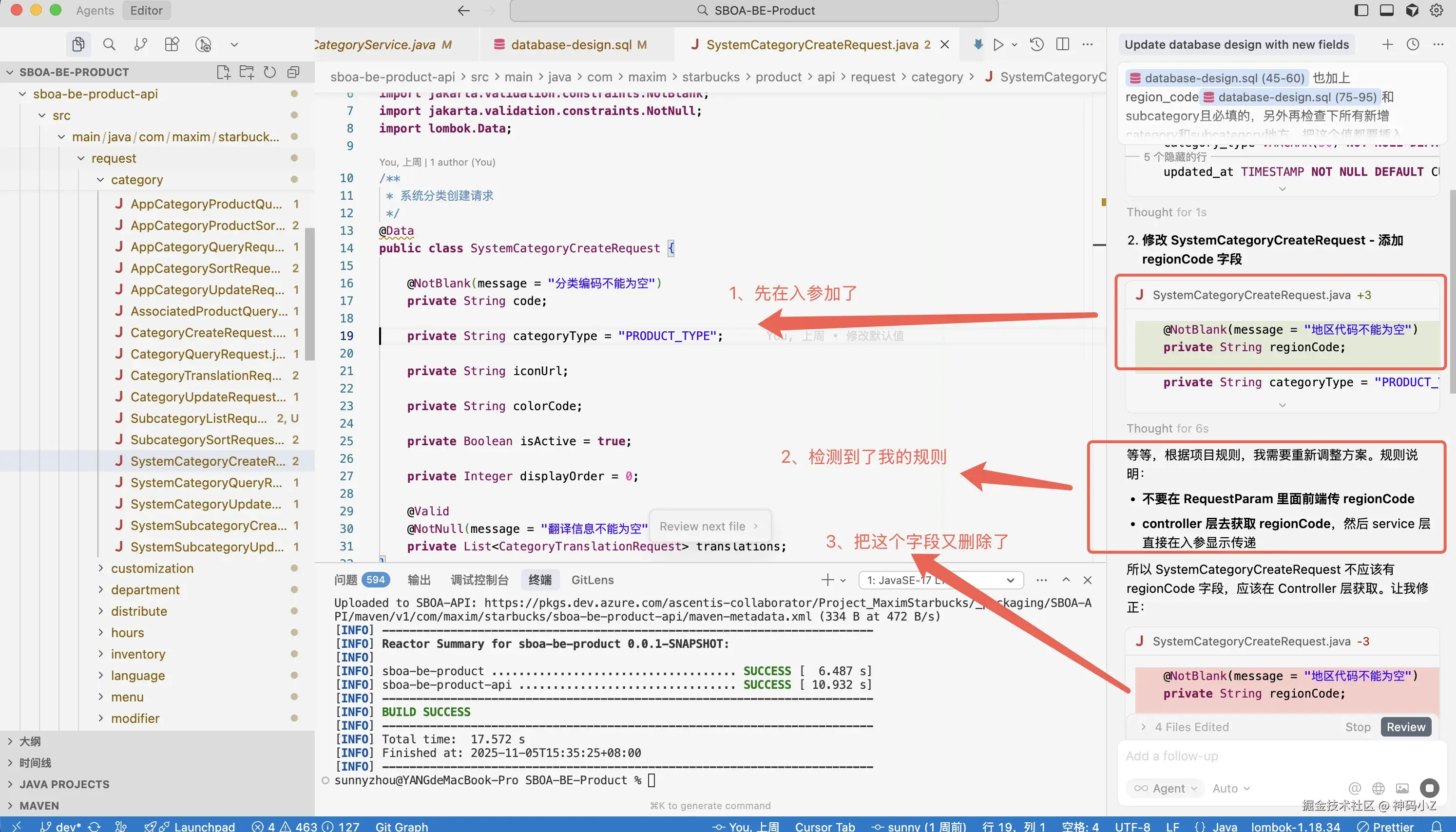 在上述 .mdc 文件中,我们用清单形式明确规定了两个要点:避免使用@RequestParam,以及**采用ThreadLocal获取语言。保存该规则后,Cursor AI 会在生成代码时将这些要求作为系统提示的一部分 。也就是说,当AI为我们的Spring项目编写控制器代码时,会自动遵循这些规则**,而无需我们每次手工提醒。