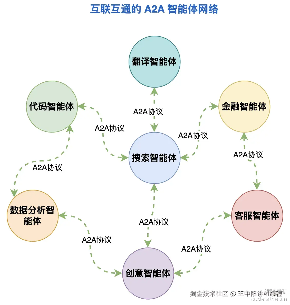 A2A(Agent to Agent)也是最近很热门的一个概念,简单来说,A2A 协议 就是为 “智能体之间如何直接交流和协作” 制定的一套标准。