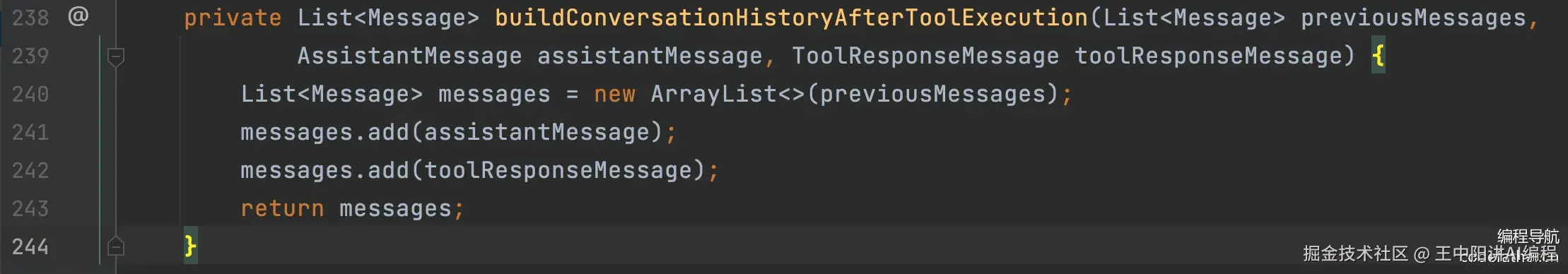 // 获取最新的助手消息 Message lastMessage = getMessageList().get(getMessageList().size() - 1);