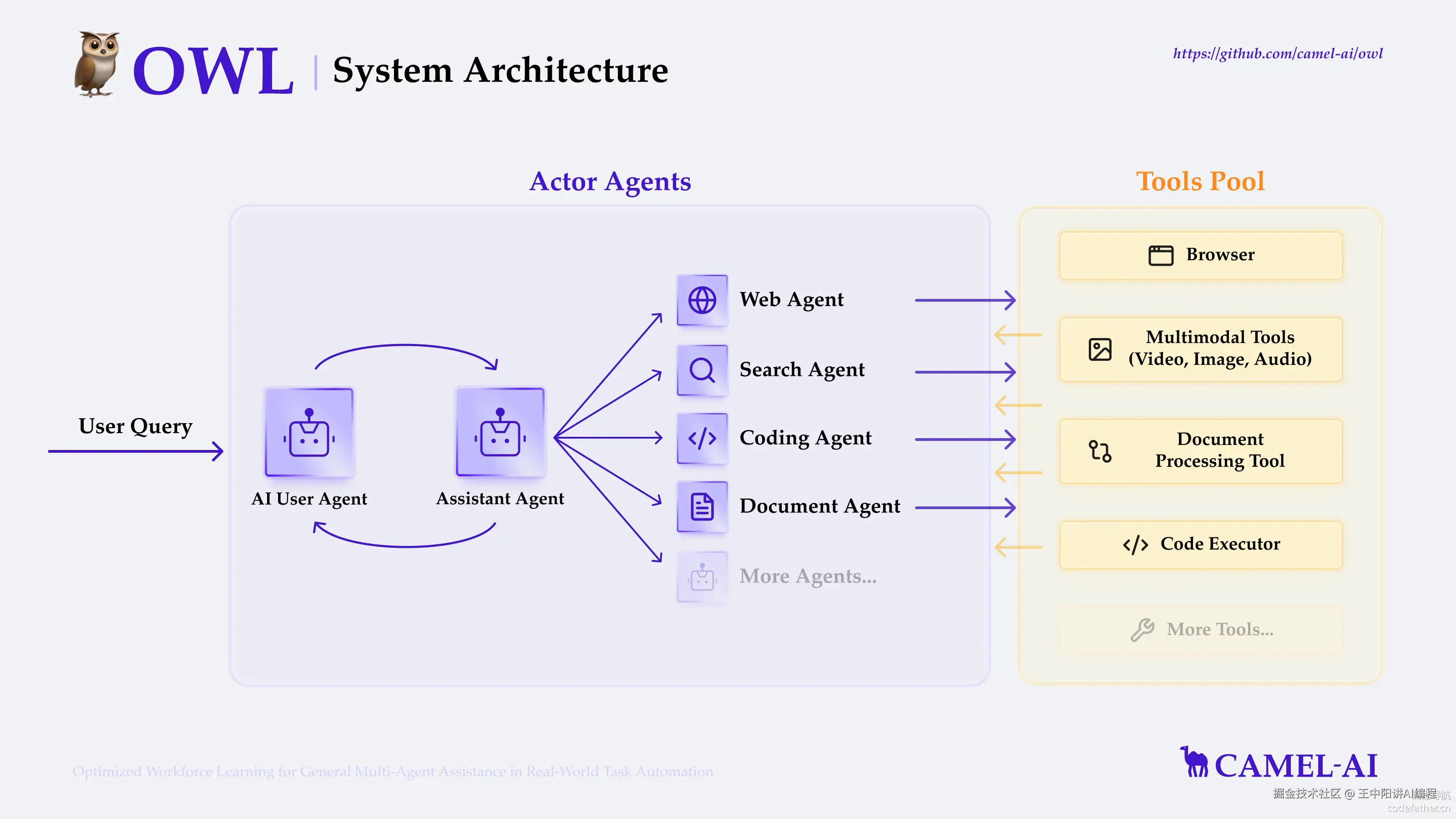 前面提到过 AI 智能体依赖工具调用能力来拓展能力边界,这里再给大家分享一个很实用的开源项目 OWL。