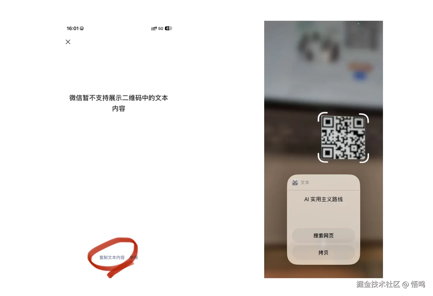 如果是手机自带的二维码扫码工具的话,可以直接预览和复制。