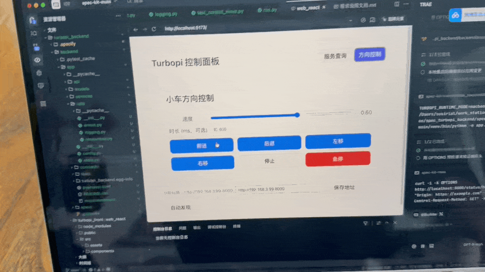 进入方向控制页面测试,一次通过测试(之前把完整的 DEMO 代码给到 TRAE)。