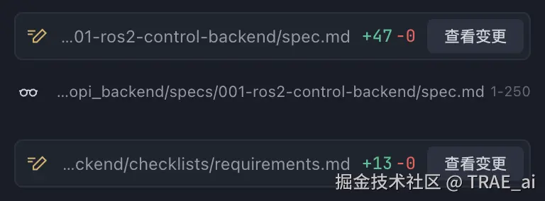 输出: TRAE 生成 SPEC 文档和需求文档。