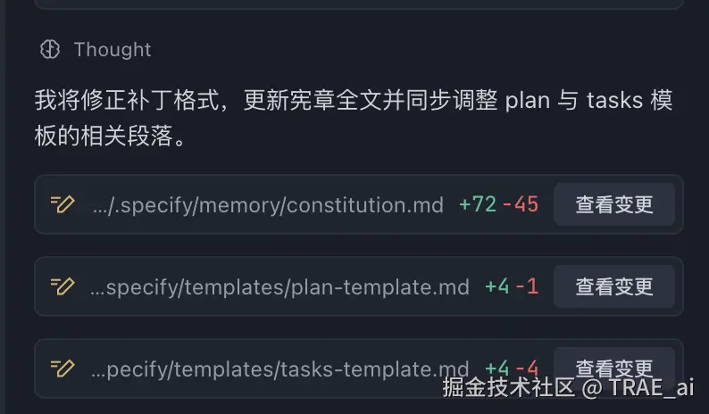输出: TRAE 生成项目宪章文档 constitution.md 并更新相关模板。