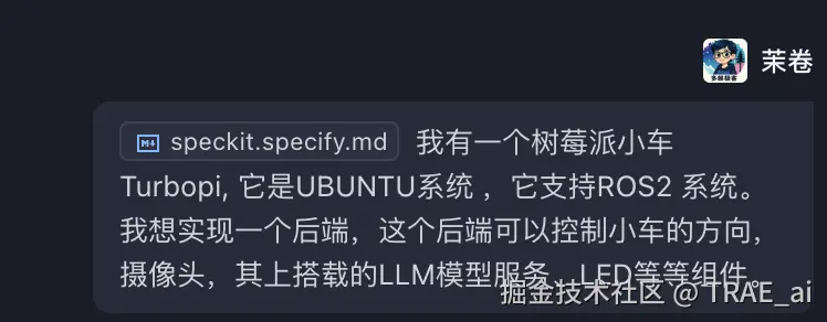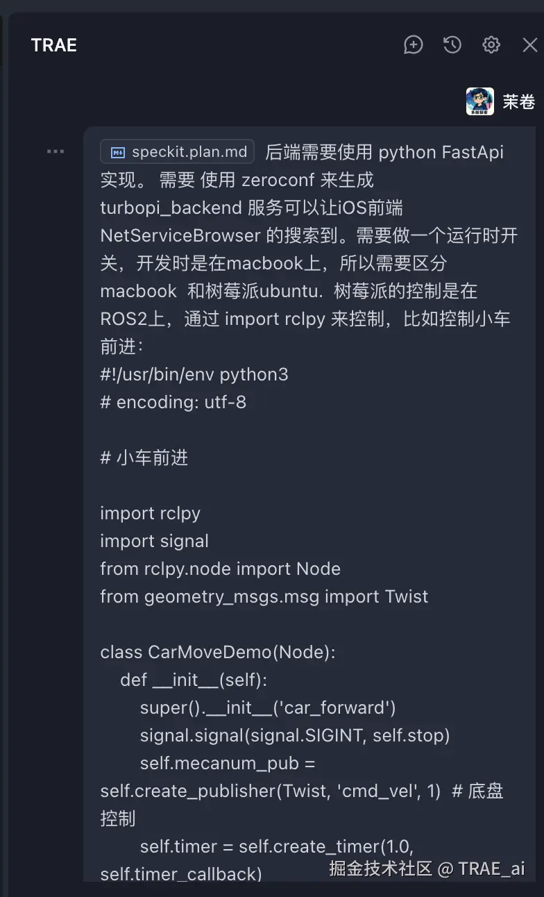 本文展示了如何使用 TRAE + Spec-kit 工具链,从需求定义到代码实现,完整构建一个树莓派智能小车控制系统。整个流程遵循规范化开发流程,通过 AI 辅助大幅提升开发效率,同时保证代码质量和系统可维护性。