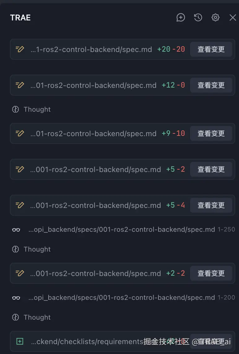 输出: TRAE 更新 SPEC 文档和需求文档。