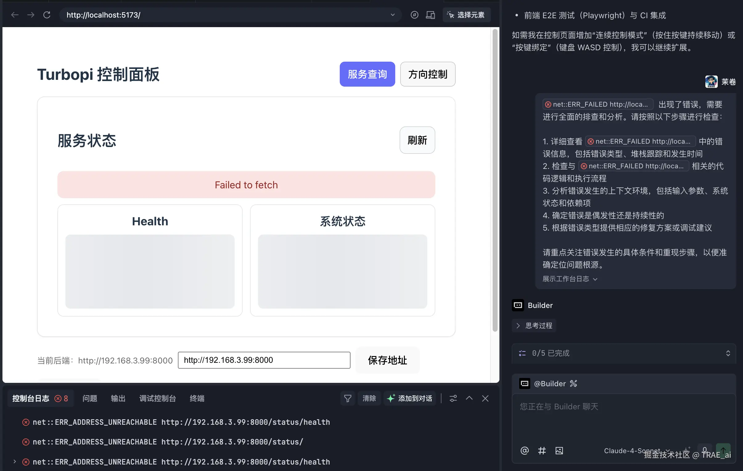 页面有些问题,将底部的错误输入到 TRAE 对话框,让它检查,修复。
