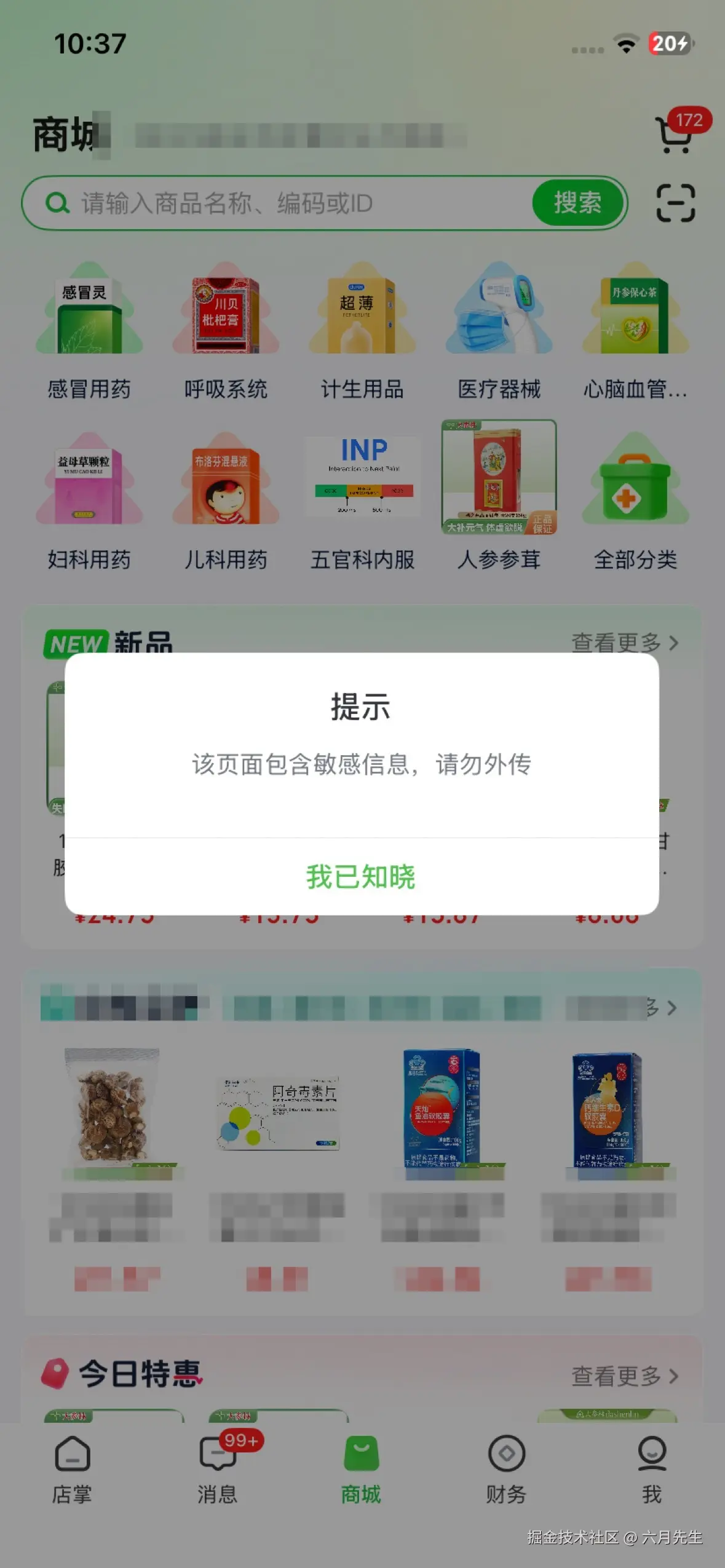 为避免用户误以为是异常,京东金融会弹出提示,而大参林内部 App 则进一步优化,支持自定义防截屏/录屏页面,可在 _UITextLayoutCanvasView 前插入个性化内容进行展示