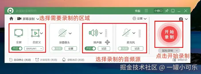 作为2025年用户口碑最佳的录屏工具,数据 蛙录屏软件的界面采用扁平化布局,核心功能按钮以大图标+文字标识呈现,新手平均5分钟就能掌握操作。该电脑录屏软件支持4K高清录制与MP4/MOV/WMV等多格式输出,更独创“画中画”模式——教师可同步录制课件与摄像头画面,结合实时标注工具(箭头、文本、形状)突出知识点,显著提升微课质量。
