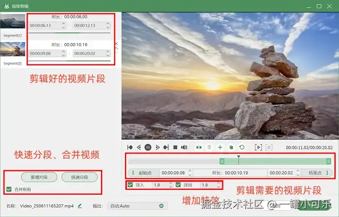 步骤3:录制结束后,系统会自动跳转至预览页面。在此页面可完成视频重命名操作,若需添加转场效果或对视频进行分段处理,可以点击进入 “高级剪辑” 模块。修改完毕后,导出视频就大功告成了。