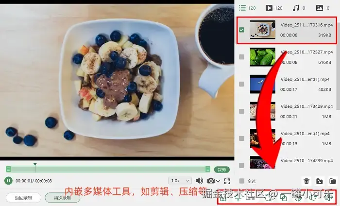 步骤3:录制视频的期间,你可以根据需求随时执行暂停、继续或结束录制的操作。录制完成后,还能使用软件自带的 “高级剪辑” 工具进行后期处理,比如快速拆分视频、截取所需片段等基础剪辑操作。