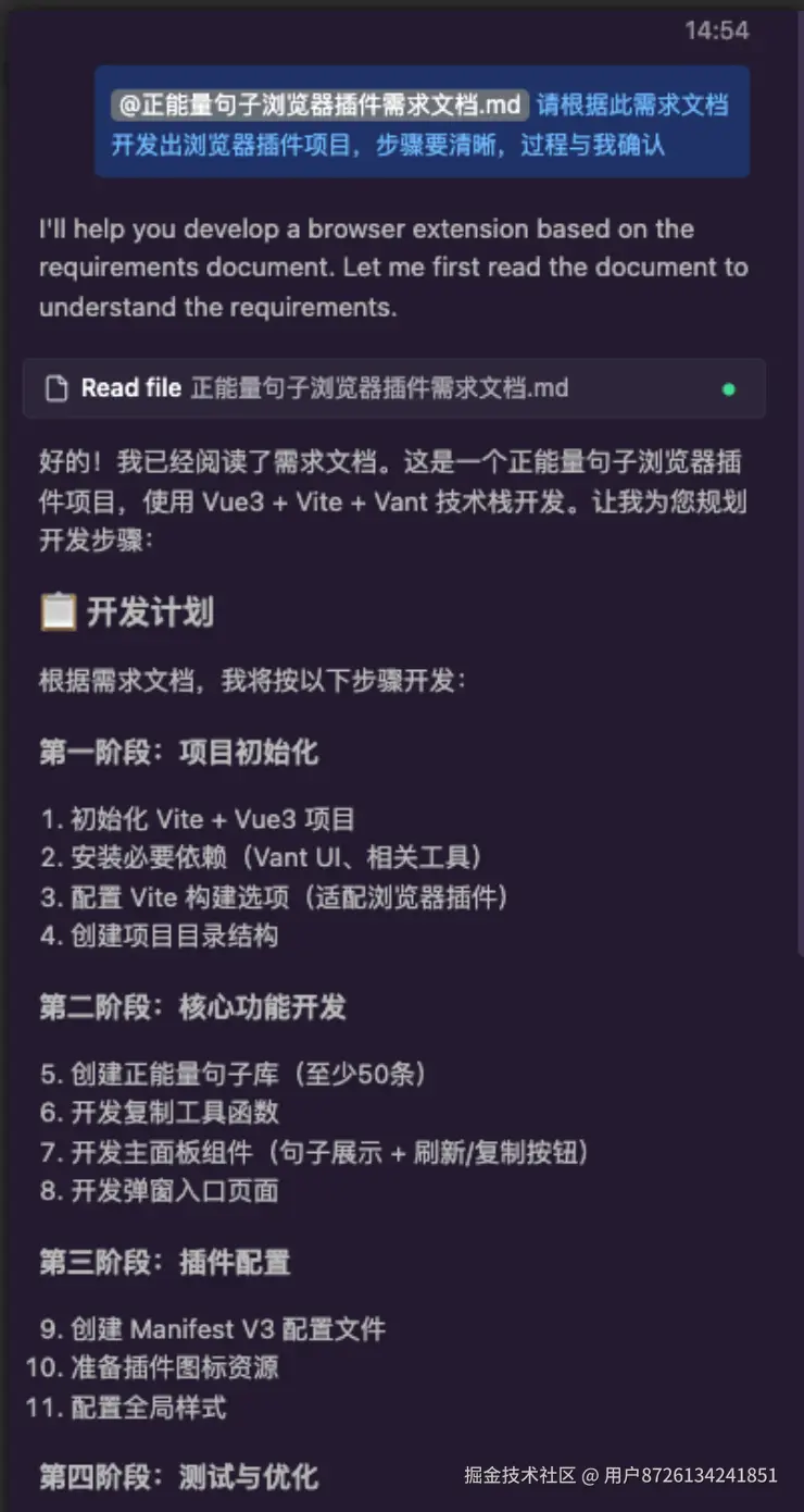 @正能量句子浏览器插件需求文档.md 请根据此需求文档开发出浏览器插件项目,步骤要清晰,过程与我确认