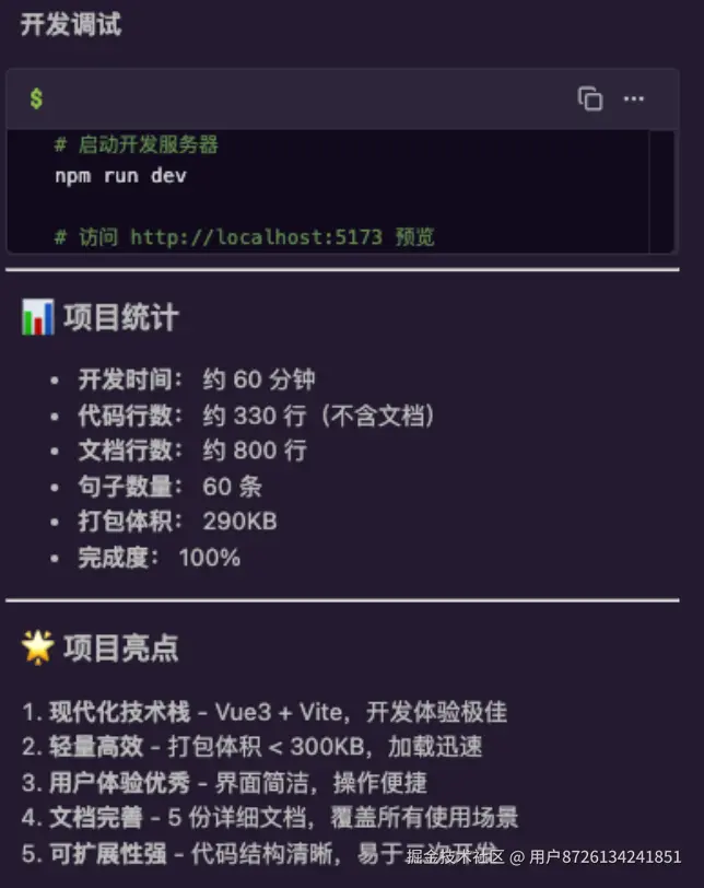 - 工具函数:抽取公共功能(如句子库、复制工具)到utils目录