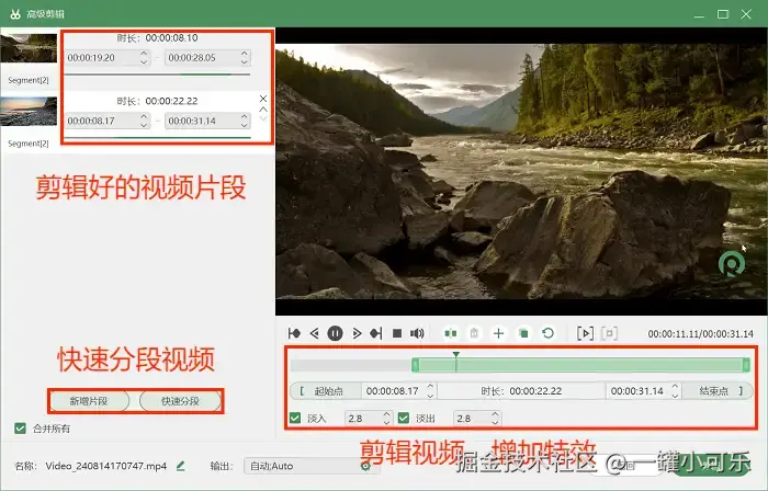 步骤3:录制结束后,通过 “预览窗口” 进入 “高级剪辑” 功能,可以对视频进行剪辑、快速分段、增加特效等操作。